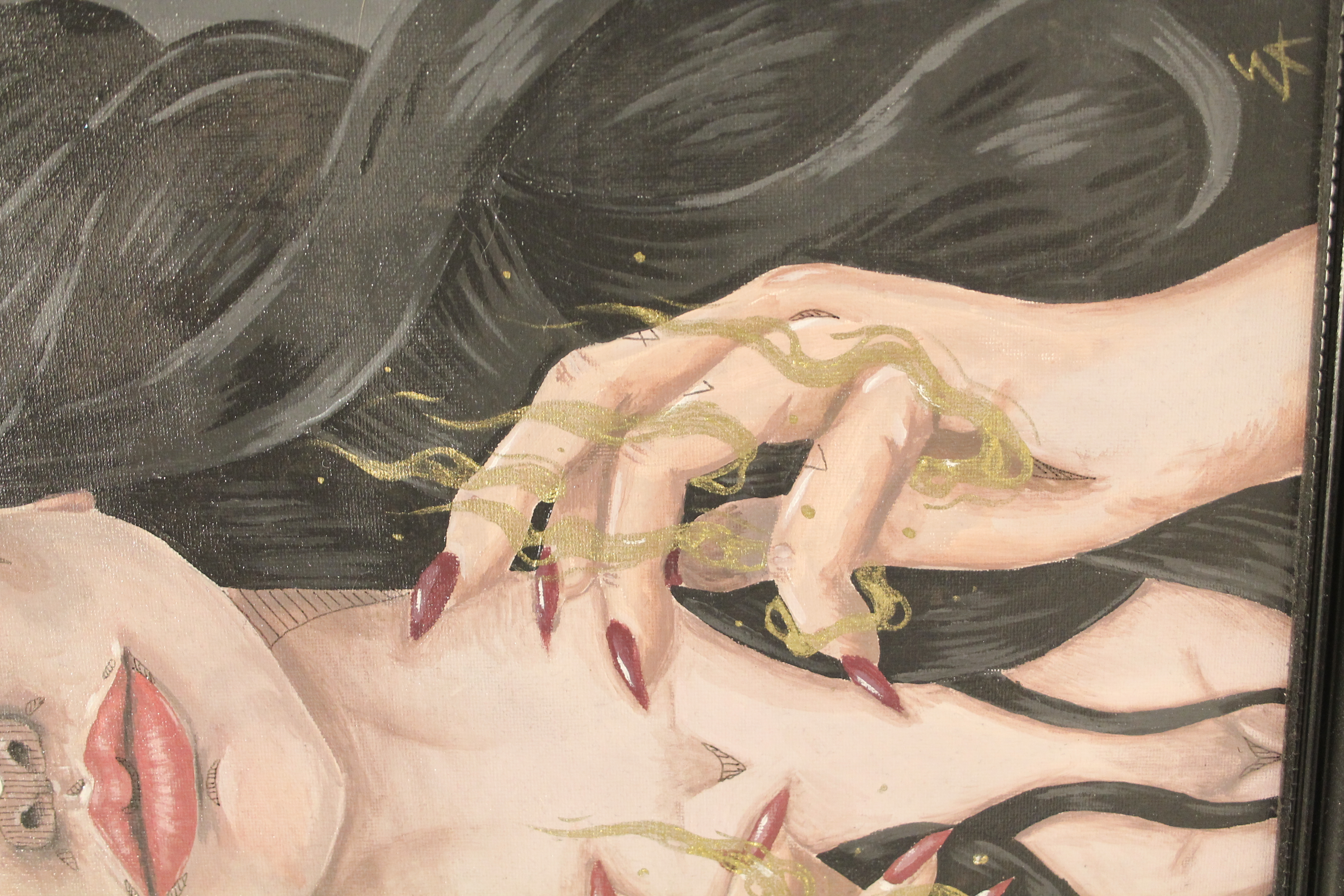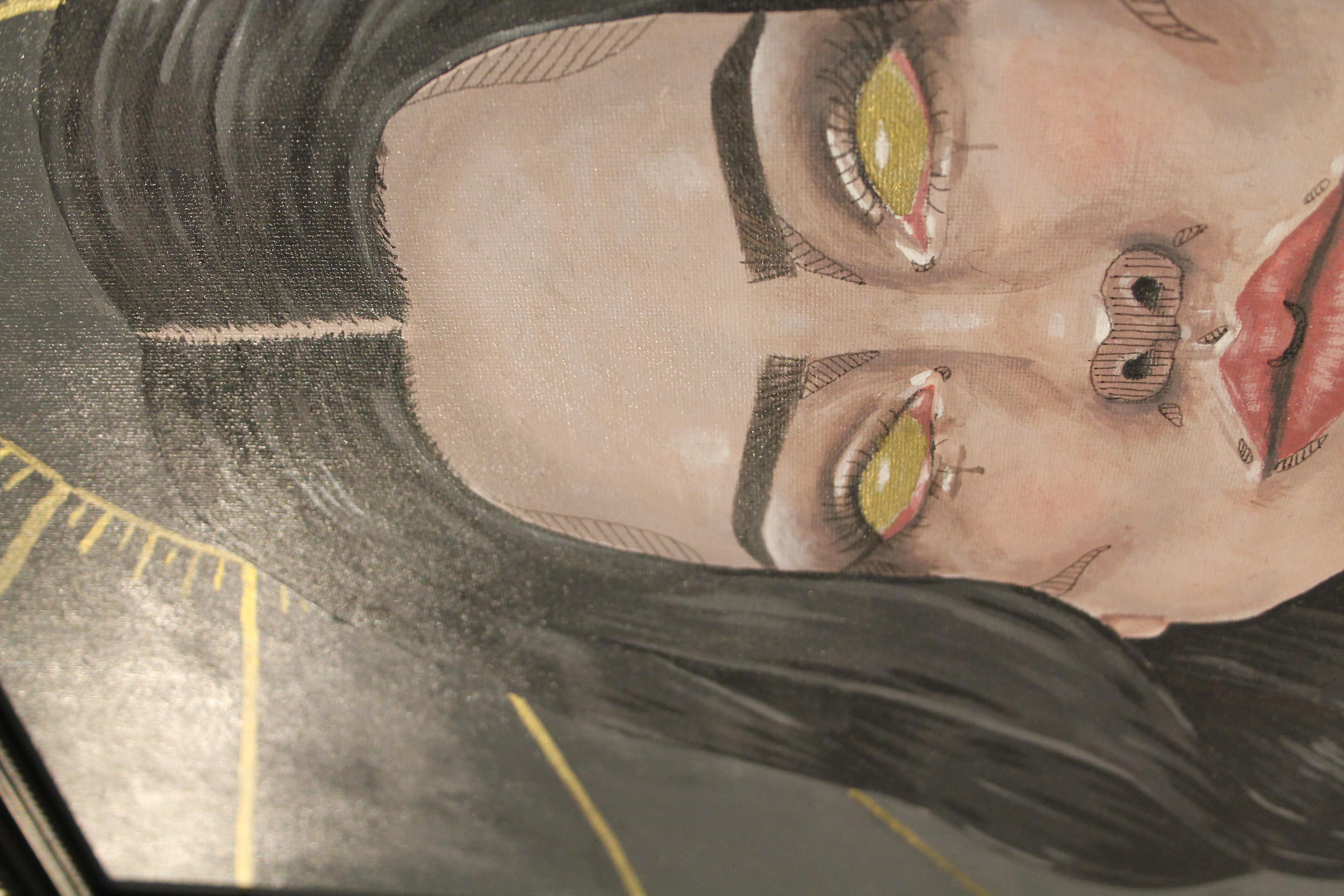 Inspired by the book series “Shadow And Bone” by Leigh Bardugo. Inspiration was from the quote “Fine, make me your villian” and i decided to create my own interpretation on “The Darkling” character. I later turned this pieve into as ixed media canvas using acrylic, fineliner markers and gold ink.